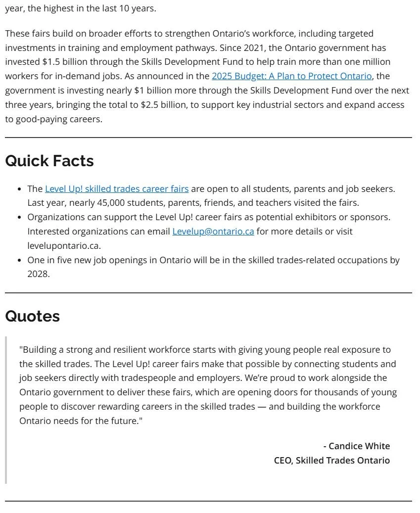 Pitched Level Up! Skilled Trades Career Fairs 2025 launch to 50+ provincial, regional and trade journalists and newsrooms.